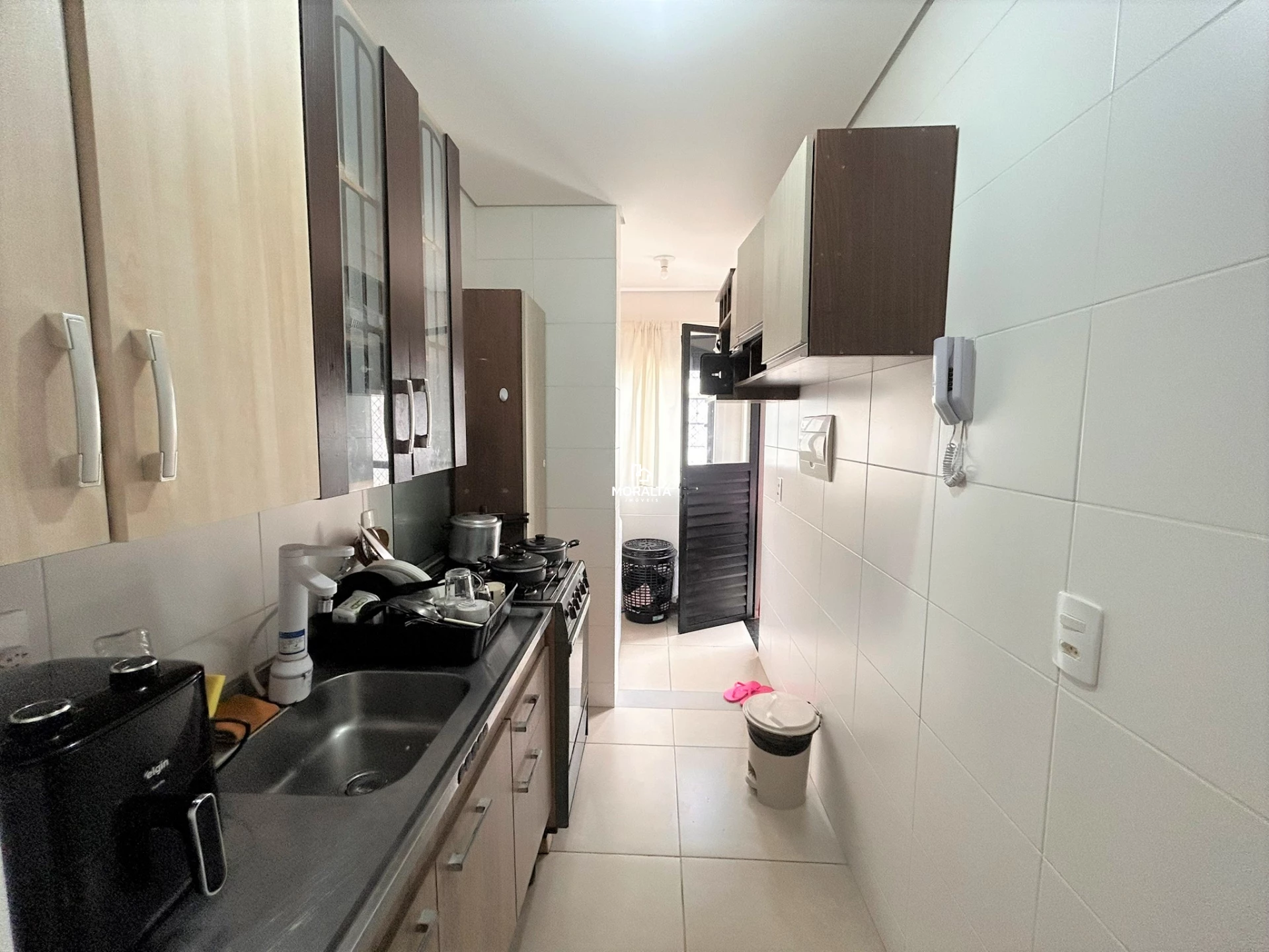 Cozinha ambiente integrado com área de serviço;
