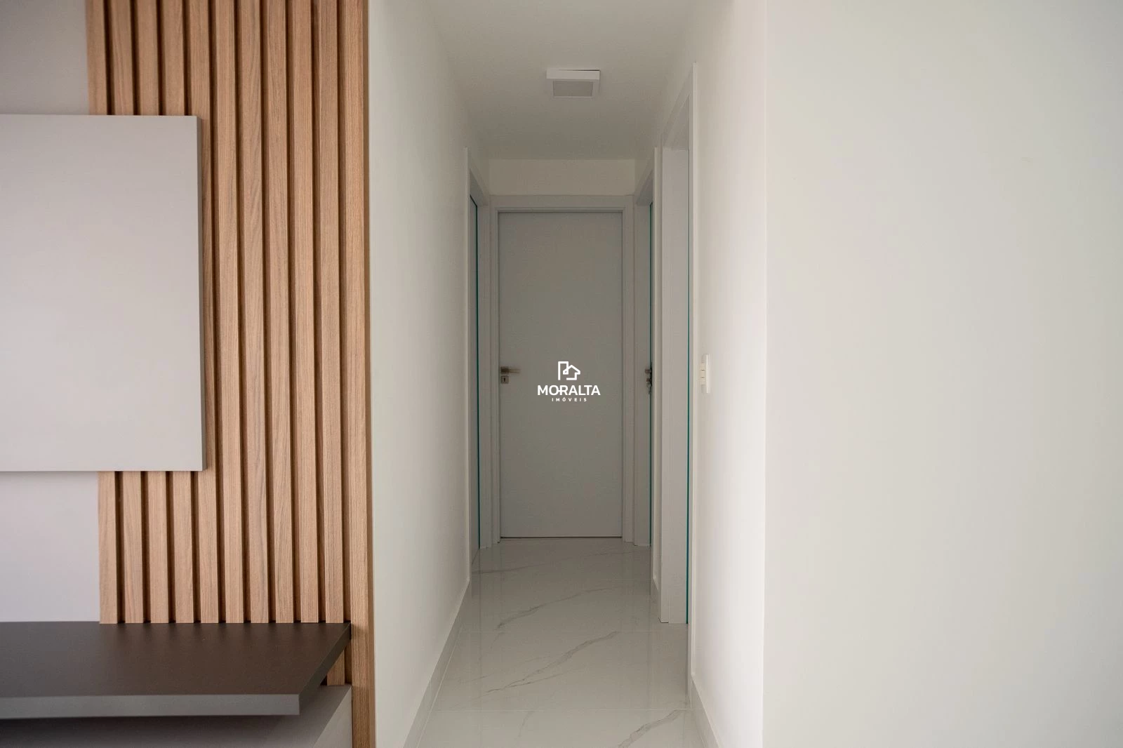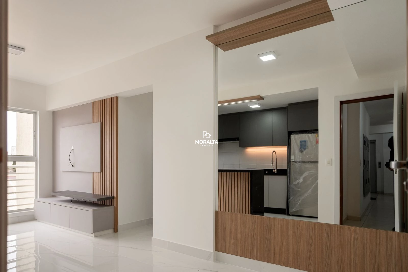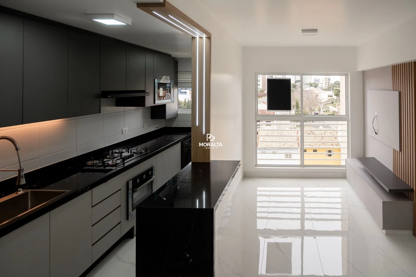 Acabamentos de alto padrão: porcelanato na cozinha e piso laminado premium nos demais ambientes