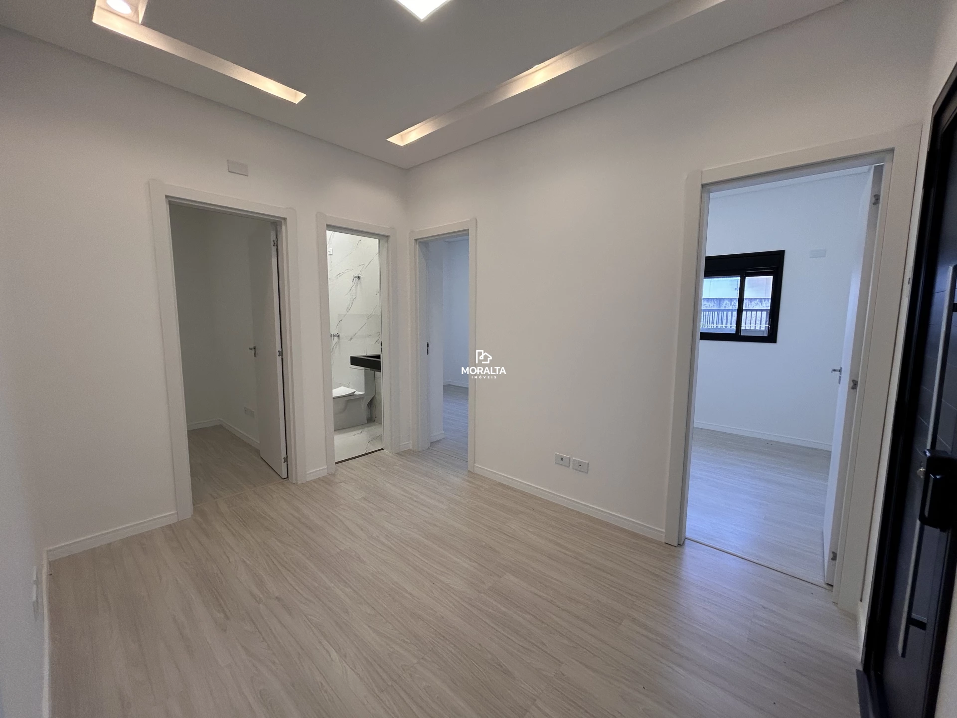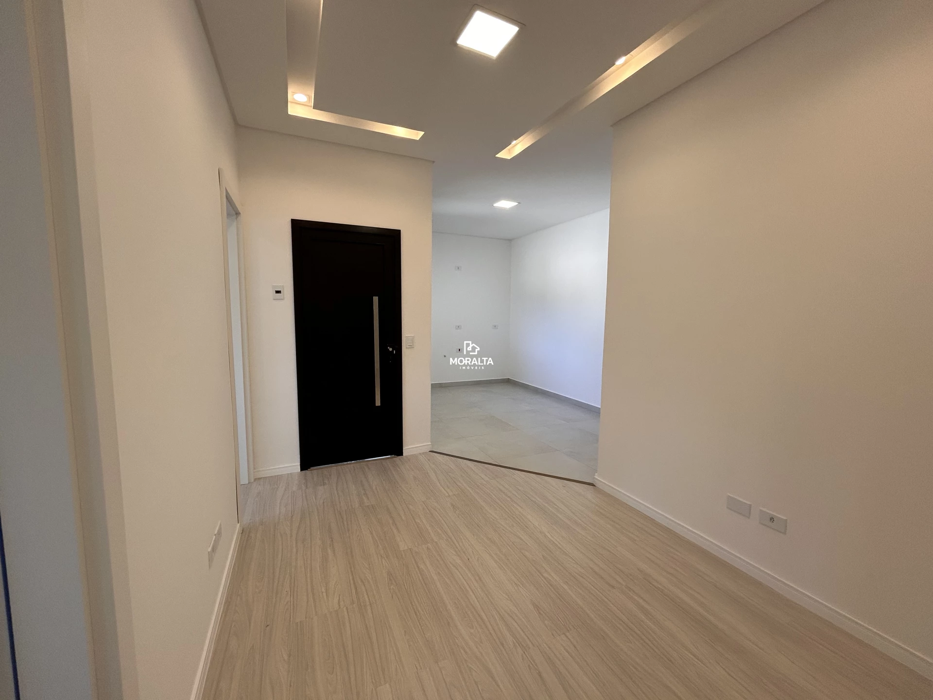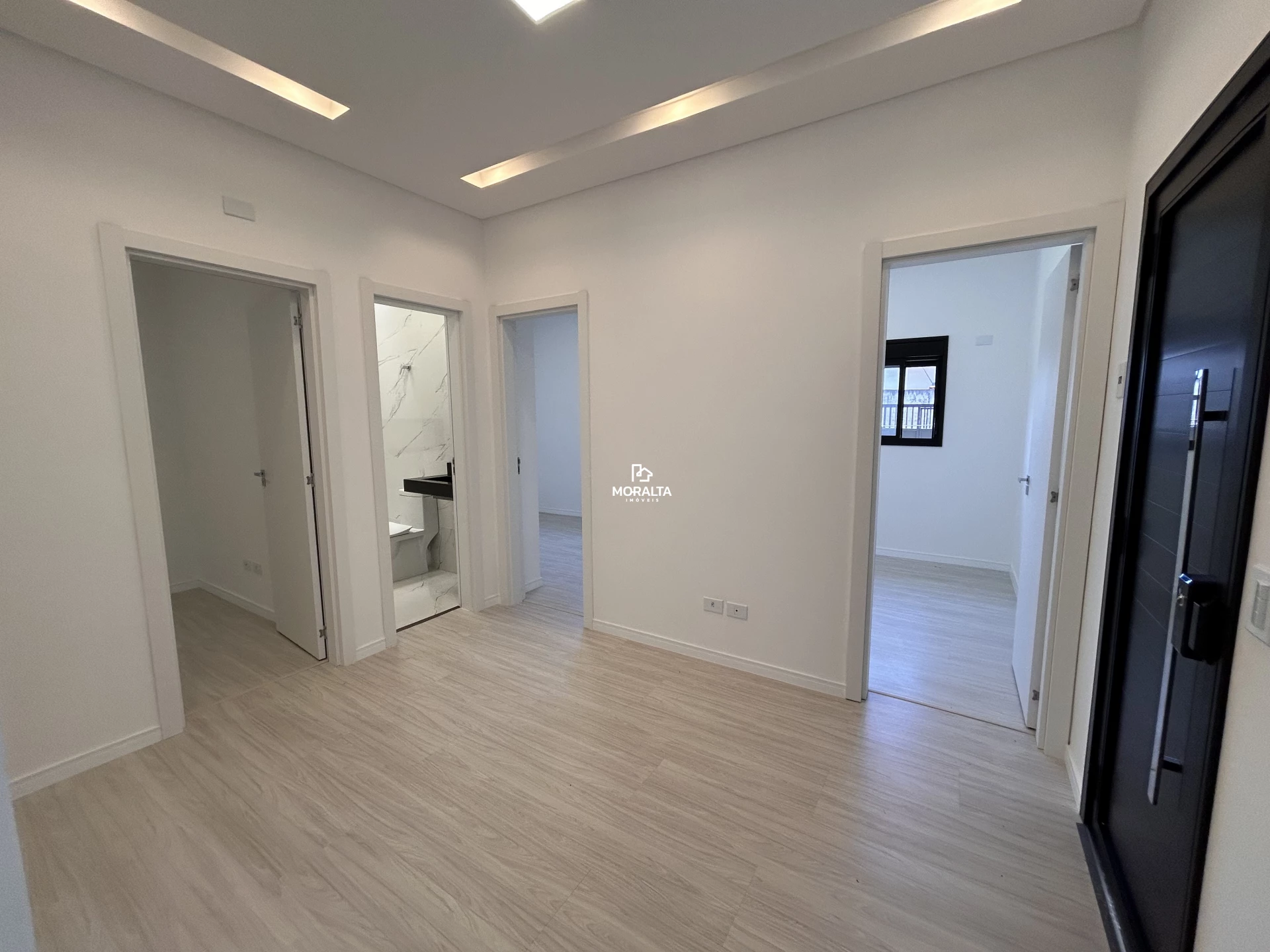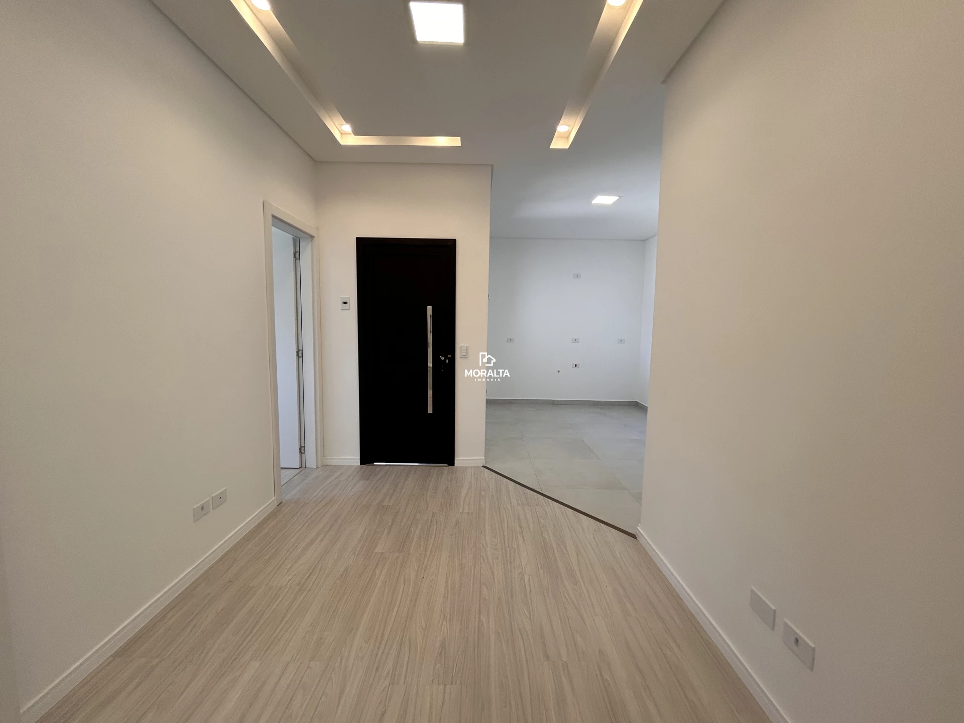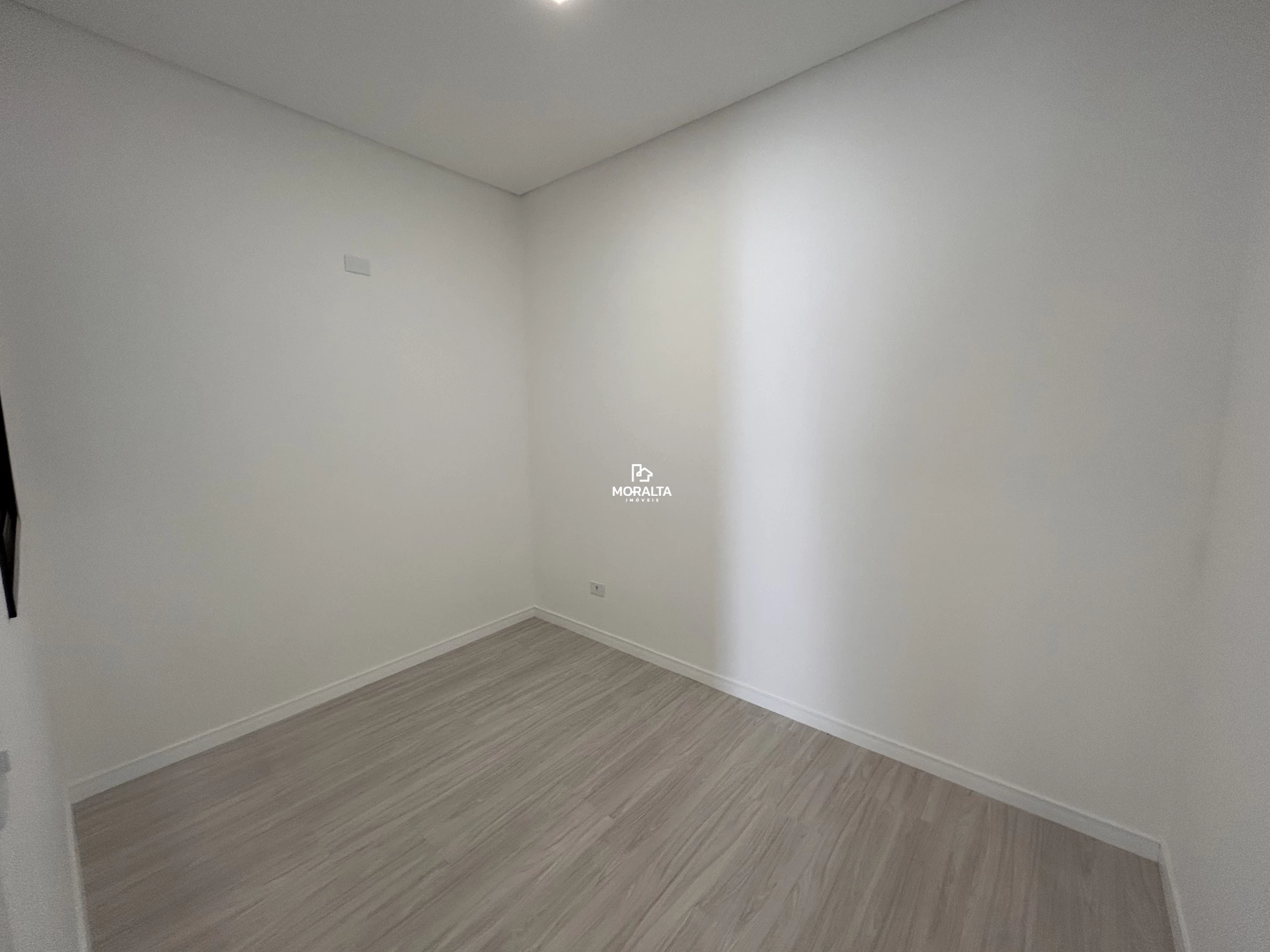 Piso porcelanato nas áreas frias e laminado nos quartos e sala;