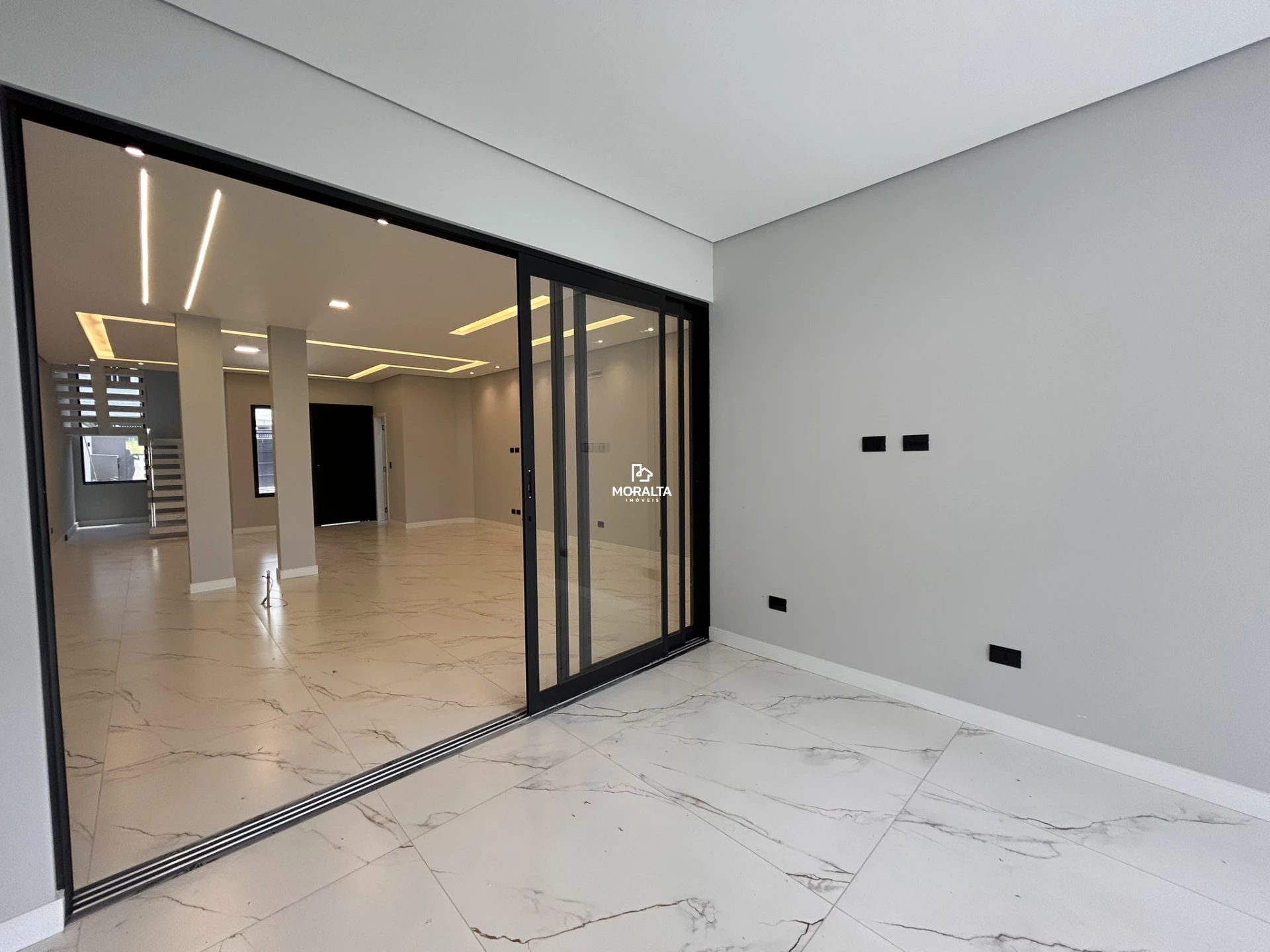 Spobrado de Alto Padrão com Fachada Moderna e Espaço Gourmet Integrado localizado no bairro Aristocrata em São José dos Pinhais/PR.