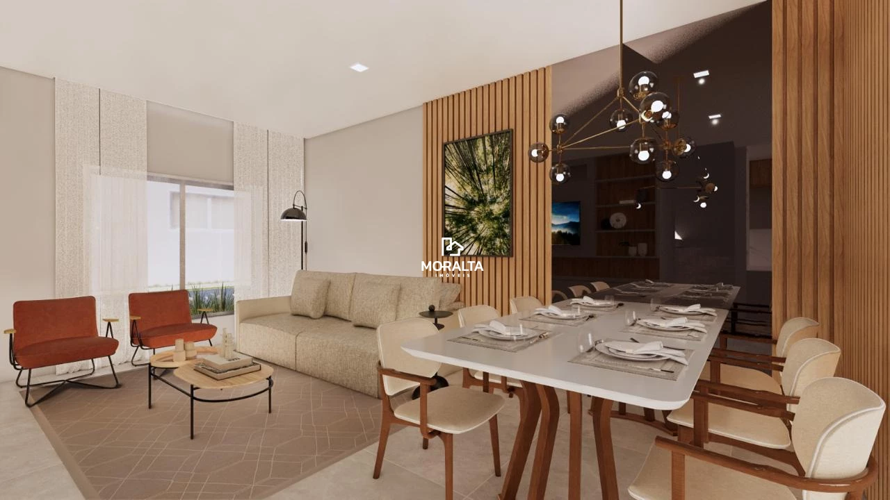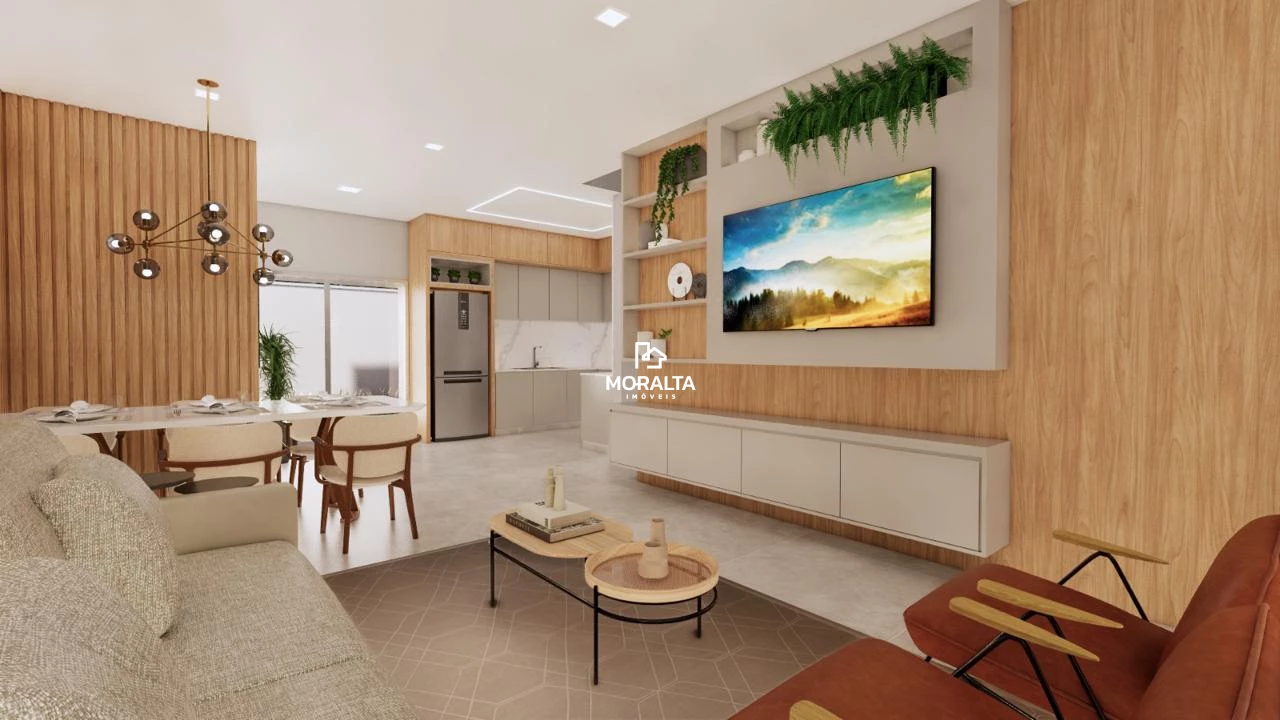 Sala ampla para dois ambientes, integrada à cozinha;