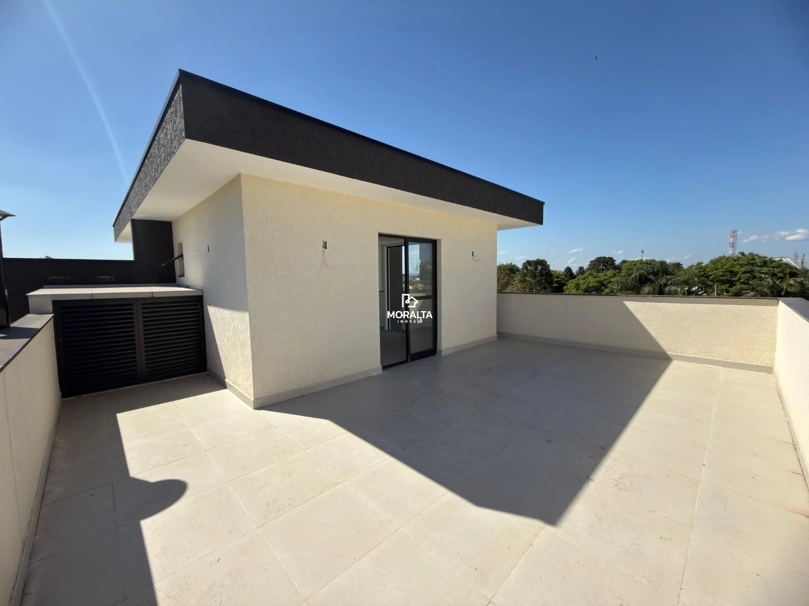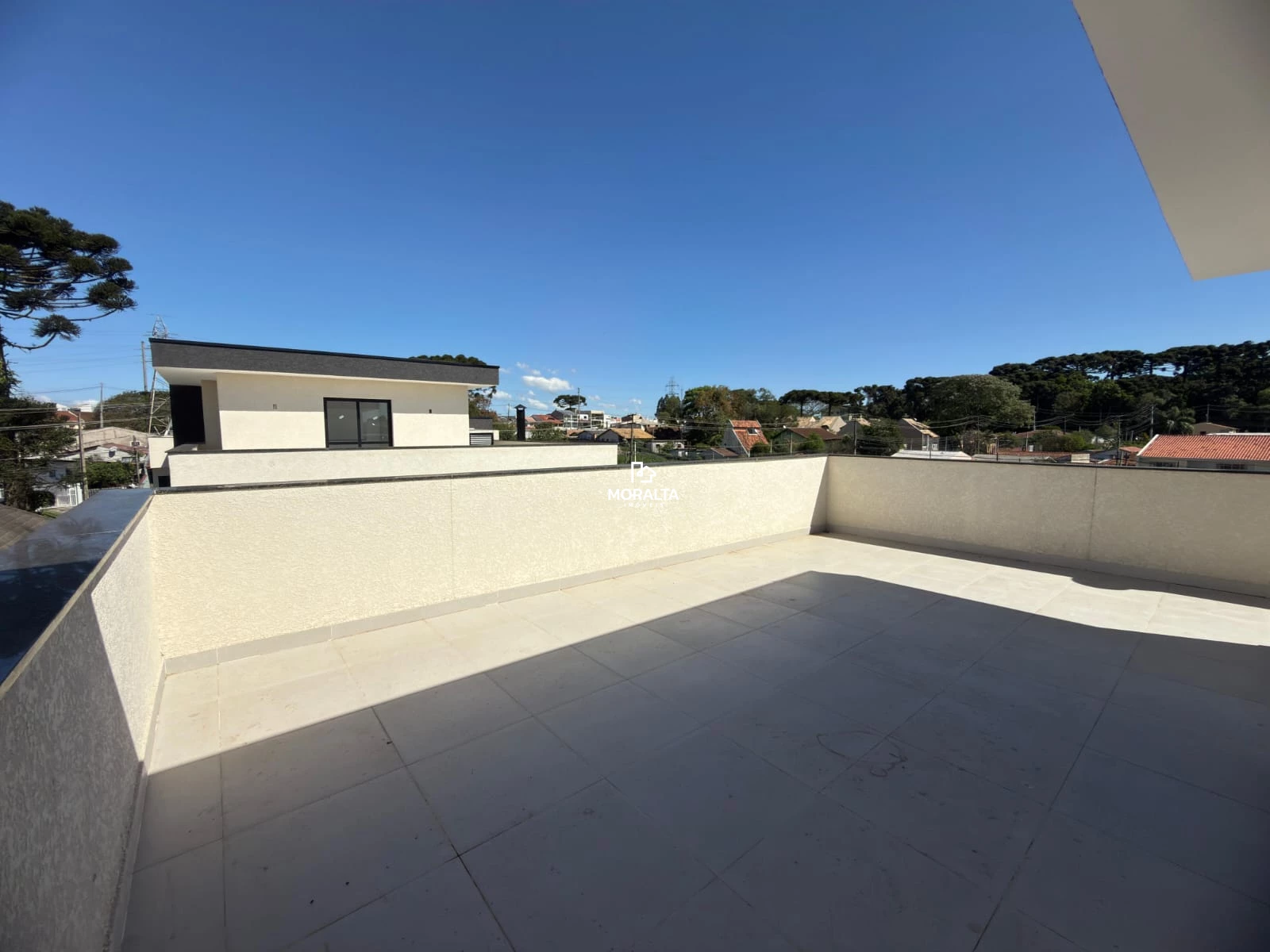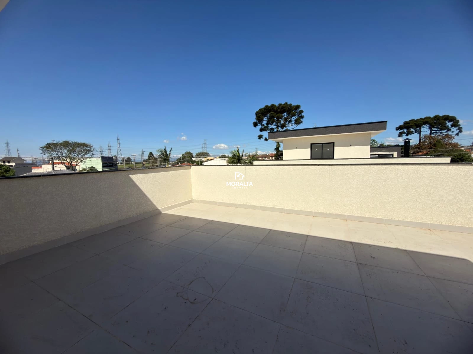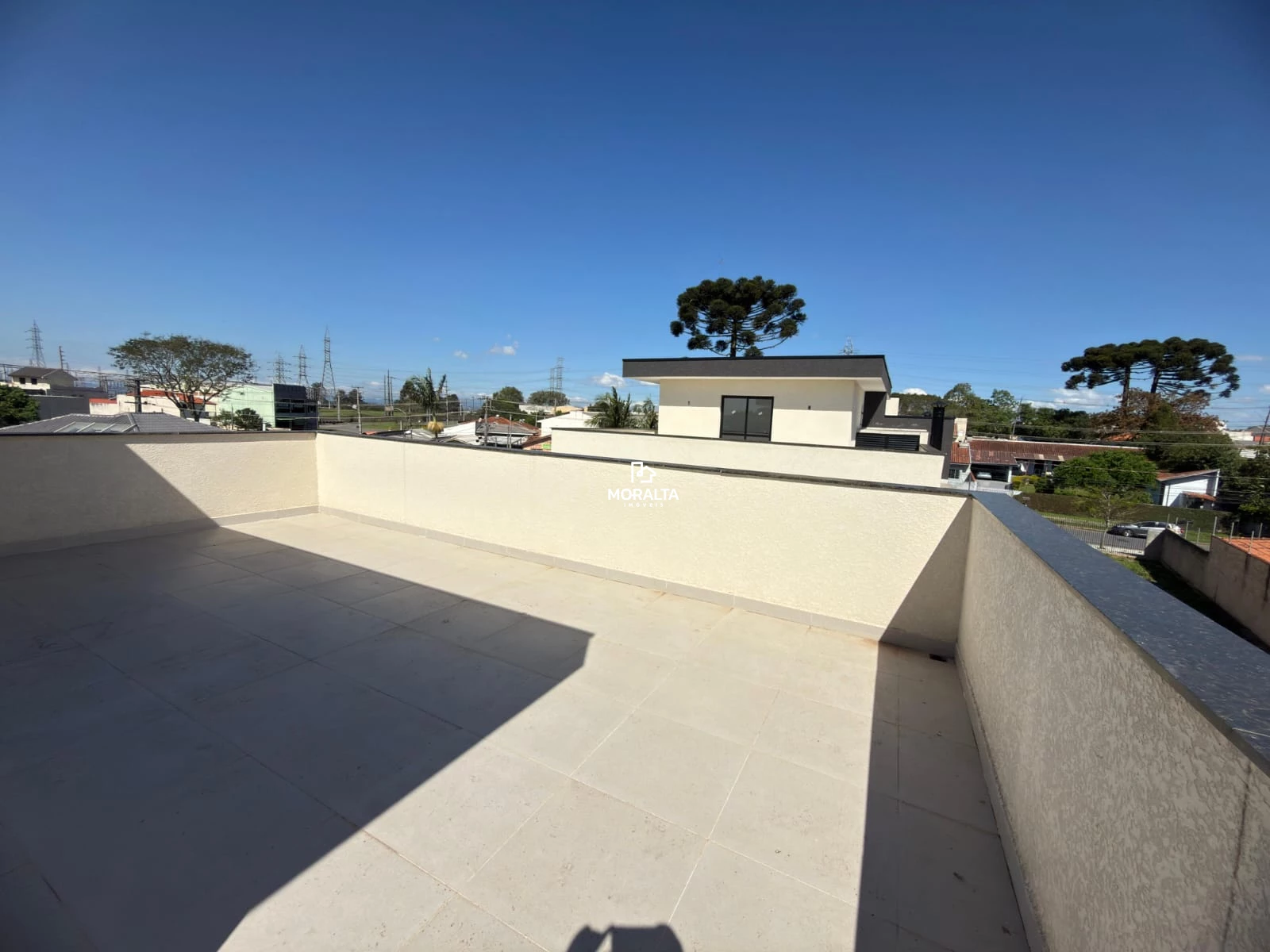 Amplo terraço com vista livre, ideal para lazer, confraternizações ou área de descanso